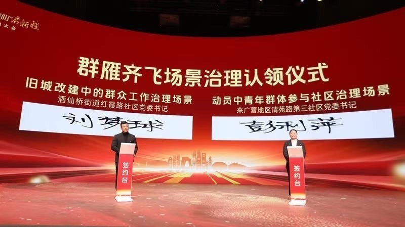 大会现场,“共朝美好”品牌正式发布。“共朝美好”以全景式领导的党建组织体系,全方位协同的社会动员体系,全过程民主的群众自治体系,全龄段友好的综合服务体系,全链条融合的文化凝聚体系,全梯队赋能的队伍保障体系等六大体系为支撑,推动党建引领基层共同体建设。